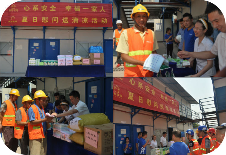炎炎夏日,驕陽似火,工友們還在在艷陽高照,陽光毒曬的工地上,戴著安全帽緊張的忙碌著……